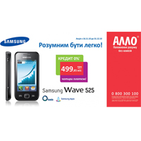 Тільки в Алло смартфон Samsung Wave 525 за ціною 1999 гривень! Скористайтесь унікальною можливістю - придбайте смартфон Samsung Wave 525 в салонах Алло у кредит 0%. Сплачуй лише 499,85 грн. на міся... подробнее >>>
