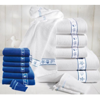 С жаккардовой каймой в морском стиле. Обе расцветки отлично сочетаются. Мягкий, хорошо впитывающий воду материал: 100% хлопок. Комплект, 8 частей: 2 рукавички (15x21), 4 полотенца для рук (50x100), 2 ... подробнее >>>